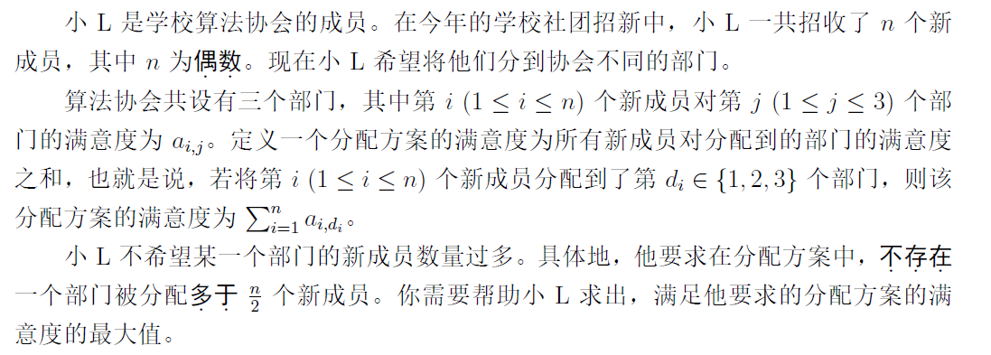 对于每组测试数据,输出一行一个非负整数,表示满足小 L 要求的分配方案的满意